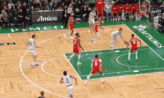今天第四节凯尔特人最好的一球:沙伊曼和普里查德二人转突破,回传弧顶,塔图姆点给加扎突破上篮。四人摸球(怀特在底角牵制),两次突破打穿。今天全队四个人助攻4次以上,人人经手摸球。